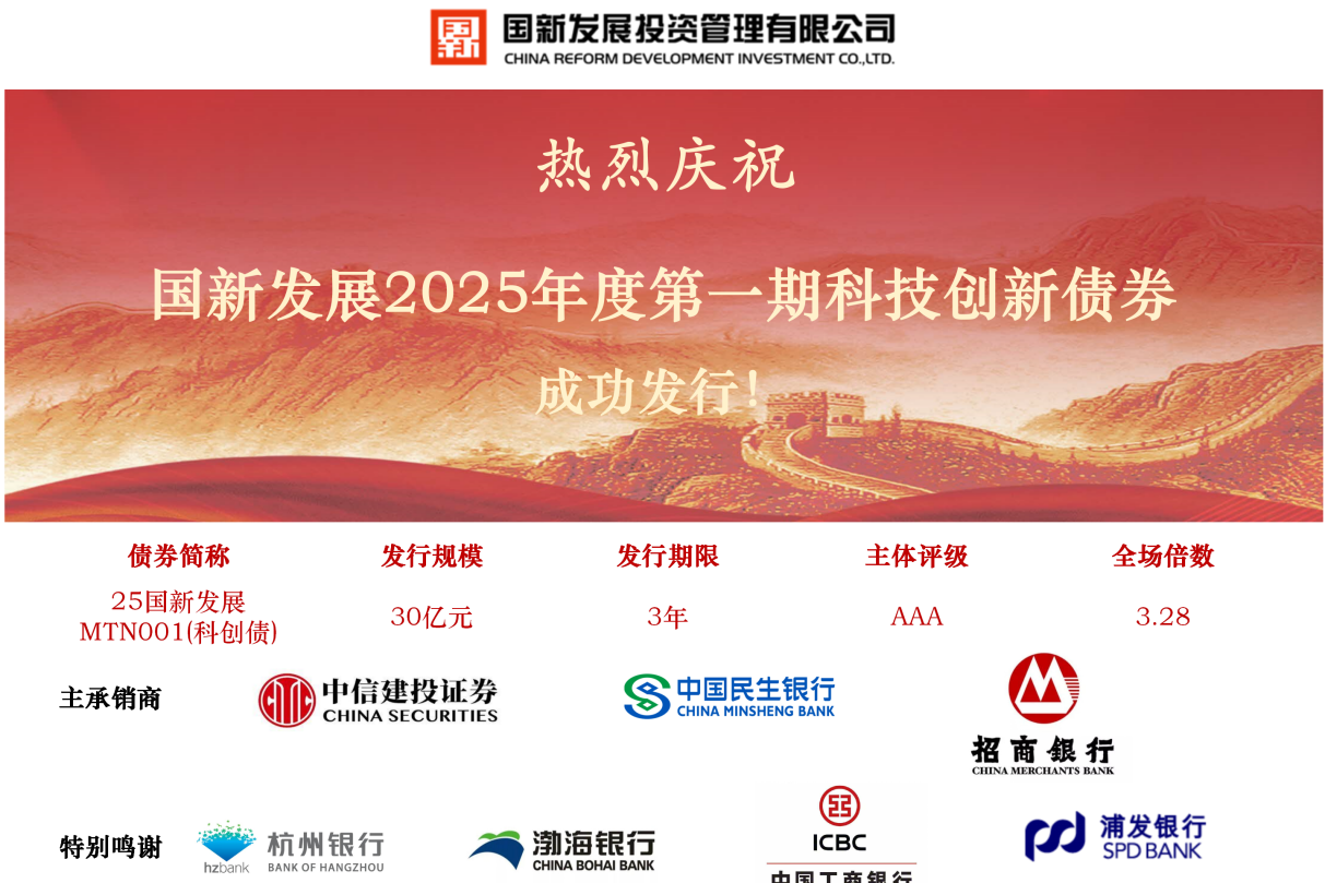 國新發展成功發行30億元科技創新債券